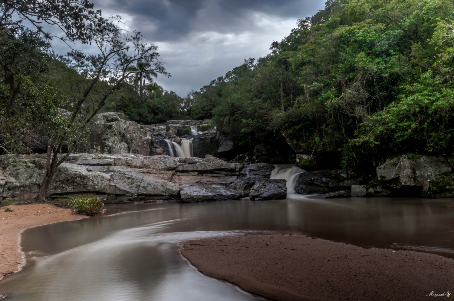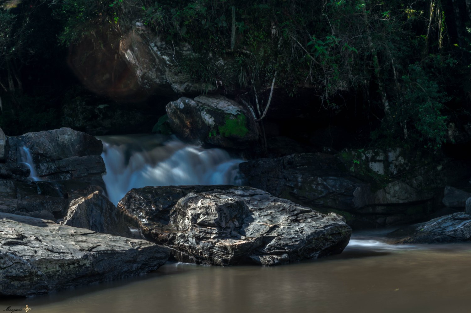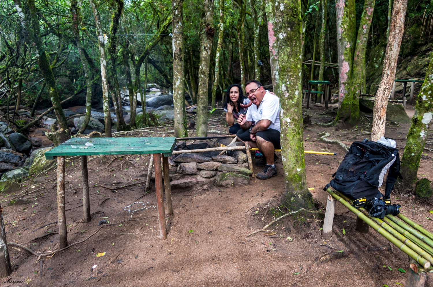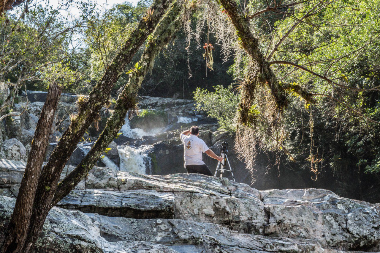 Começamos os trabalhos e a fotografar a cachoeira e o entorno. As primeiras fotos foram com o tempo nublado, mas aos poucos o tempo foi abrindo, e com o sol, o calor quase insuportável devido a humidade.