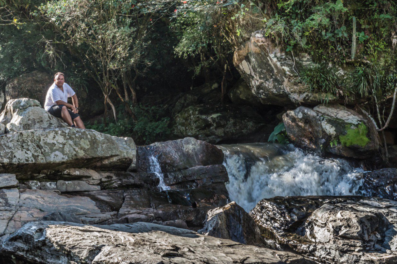 Chegamos por volta das 16h, ainda teríamos uma hora para descansar um pouco, fui na igreja, que estava sediando algum encontro, e pedi água para os cantis. Voltei para o ponto de ônibus e me sentei ao lado da minha companheira de aventuras e o Chulé, que quando viu o ônibus, nos olhou e partiu caminhando bem devagarinho para o lugar dele, a Cachoeira do Imigrante!