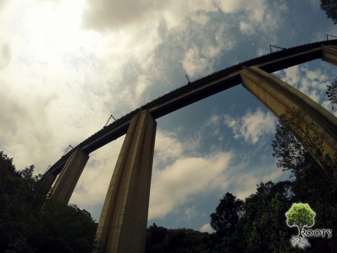 Apesar de ela não ser muito alta, (pelas minhas medidas ela tem 43 metros), o que torna o local um point bem bakana é a possibilidade de realizar essas atividades enquanto o trêm de carga passa bem pertinho de você.