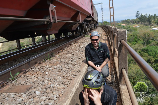 Apesar de ela não ser muito alta, (pelas minhas medidas ela tem 43 metros), o que torna o local um point bem bakana é a possibilidade de realizar essas atividades enquanto o trêm de carga passa bem pertinho de você.