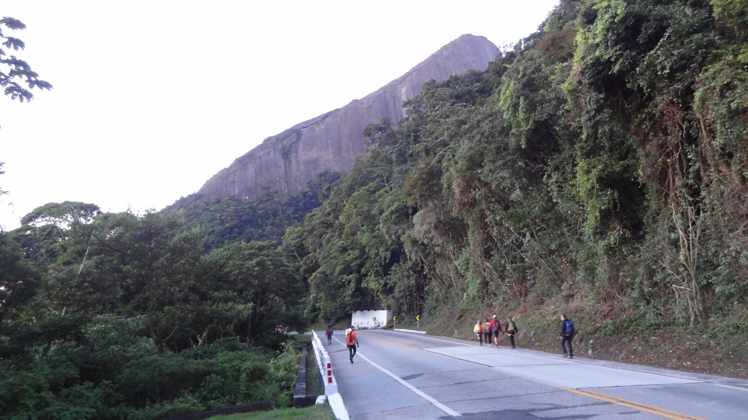 Deixamos os carros no estacionamento no restaurante que fica próximo ao Escalavrado e nossa "trilha" começou na estrada, com o nascer do Sol o sono de ficar acordado toda a noite foi indo embora. Andamos por vinte minutos em ritmo tranquilo e tirando fotos até sair da estrada e começar a subida.
