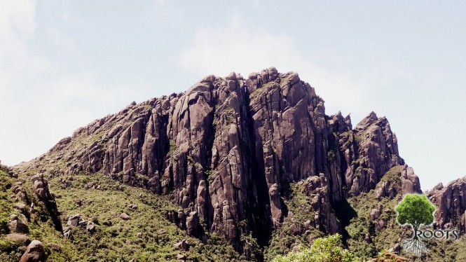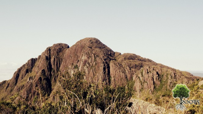 Pedra Redonda (que não é redonda) e Pico do Itaguaré ao fundo. Ainda tinha bastante chão pela frente, o grupo avançava devagar mas sem fazer longas paradas.