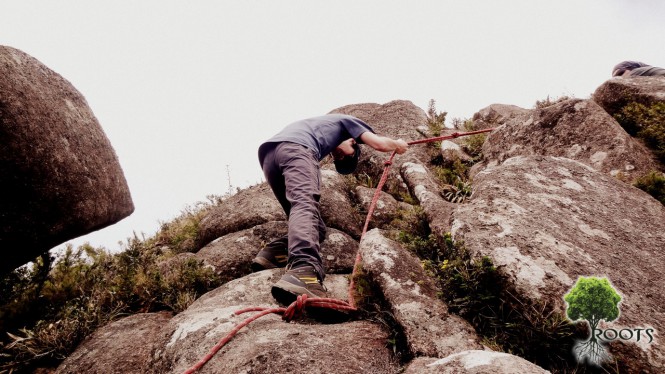 Descendo o Marinzinho, sempre levo um pedaço de corda para descer as cargueiras dos participantes, sem o peso nas costas fica muito mais fácil de descer.