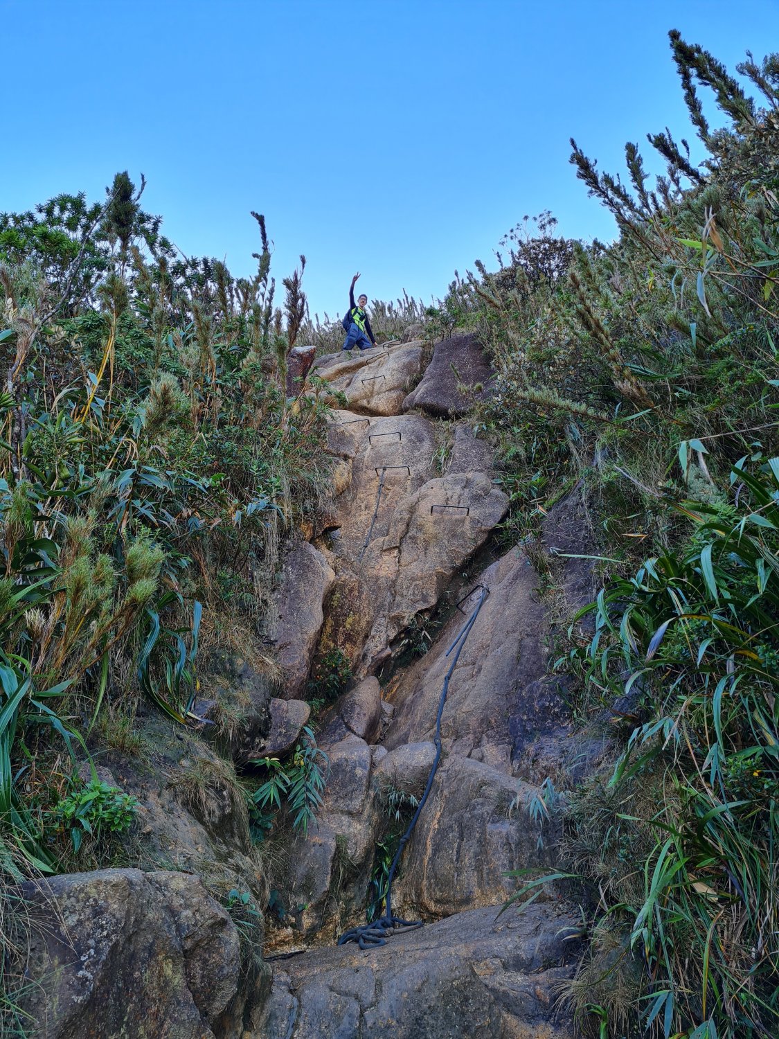 Trecho de corda e via ferrata na subida do Pico Paraná