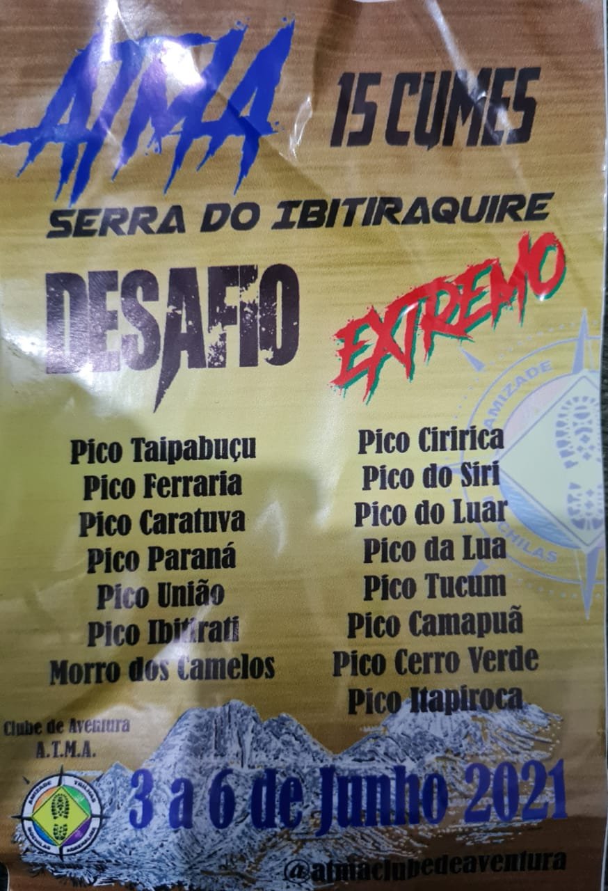 Tudo começou em 2019, durante a Travessia dos 7 maiores cumes da Serra do Ibitiraquire realizada pelo grupo ATMA Clube de Aventura. Nessa mesma ocasião, foi idealizado o Projeto 15 Cumes da Serra do Ibitiraquire, carinhosamente apelidado de "desafio extremo" dada a dificuldade de realizar esse feitio em poucos dias. A Serra do Ibitiraquire é uma serra no Paraná situada entre os municípios de Antonina e Campina Grande. Ela detém a maioria das montanhas mais altas do sul do país. Dentre elas a maior, o Pico Paraná. E foi a partir daí, que o nosso grante mentor Adilson elaborou todo planejamento para que pudéssemos tirar do papel e colocar em prática essa empreitada que nos renderia excelentes perrengues e uma experiência incrível. Já aproveito esse momento para deixar meus agradecimentos ao ATMA e Adilson pelo convite e confiança, e a todos que fizeram parte dessa Jornada: Adilson, Cláudia Bento, Vanderson, Roberto, Karina, Ana Alves, Carlos, Karina, Rebla, Baruc, Marcelo Melo, Milena, Victor, Guilherme, e eu Rafael.