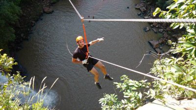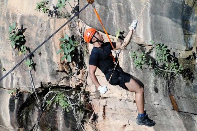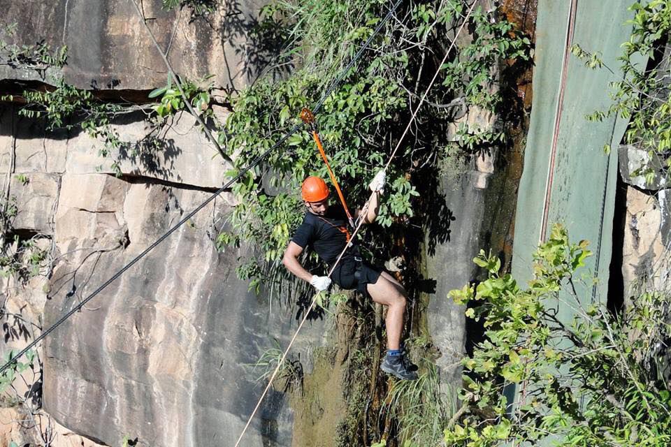 Rapel e Tirolesa na Cachoeira do Rio do Peixe na cidade de Rio Negro-MS.