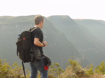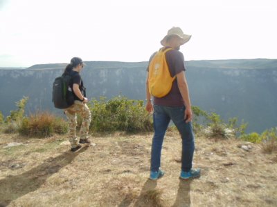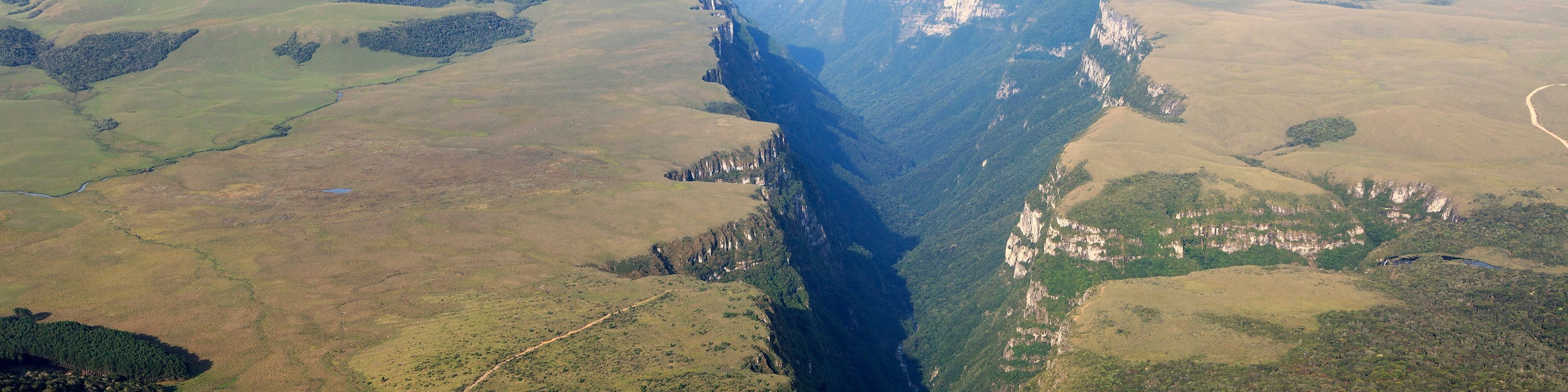 Trilha no Cânion da Fortaleza, um desfiladeiro localizado no Parque Nacional da Serra Geral, em Cambará do Sul/RS, na serra gaúcha.