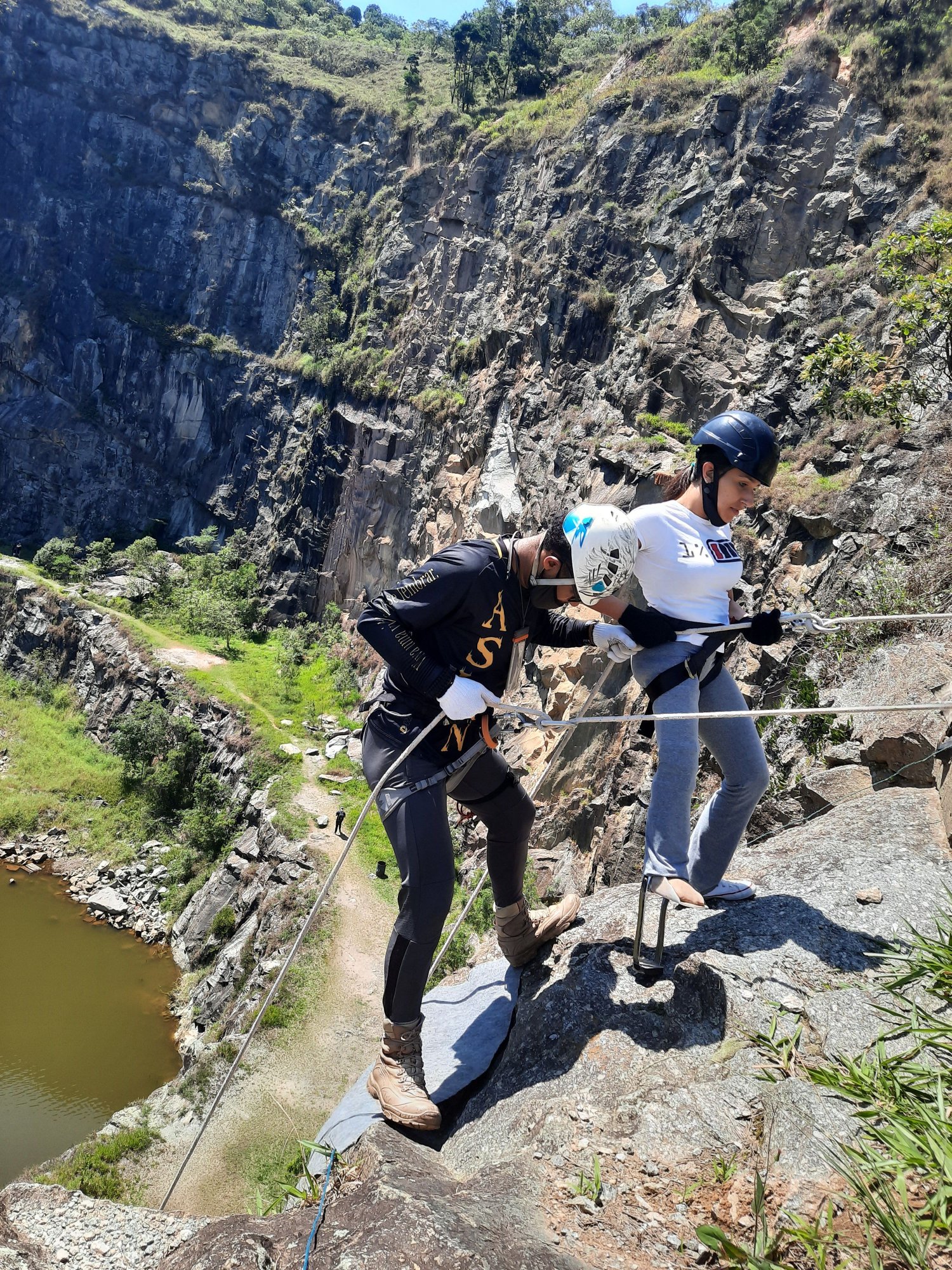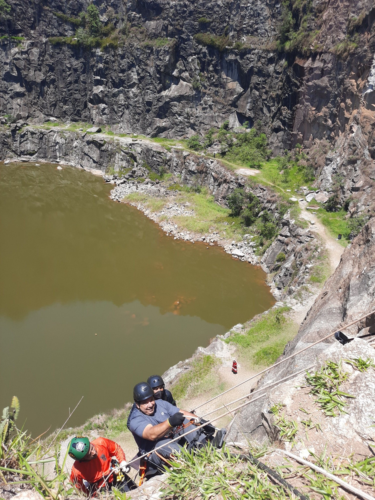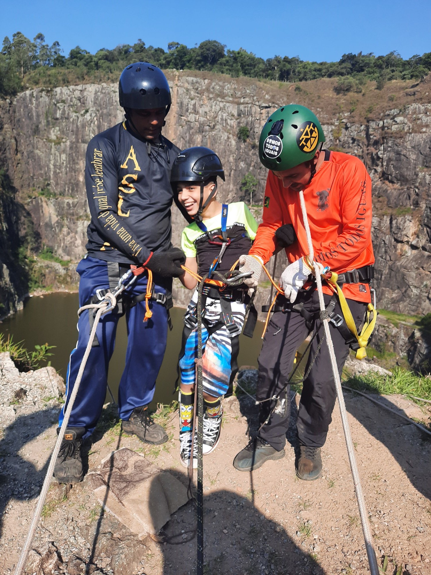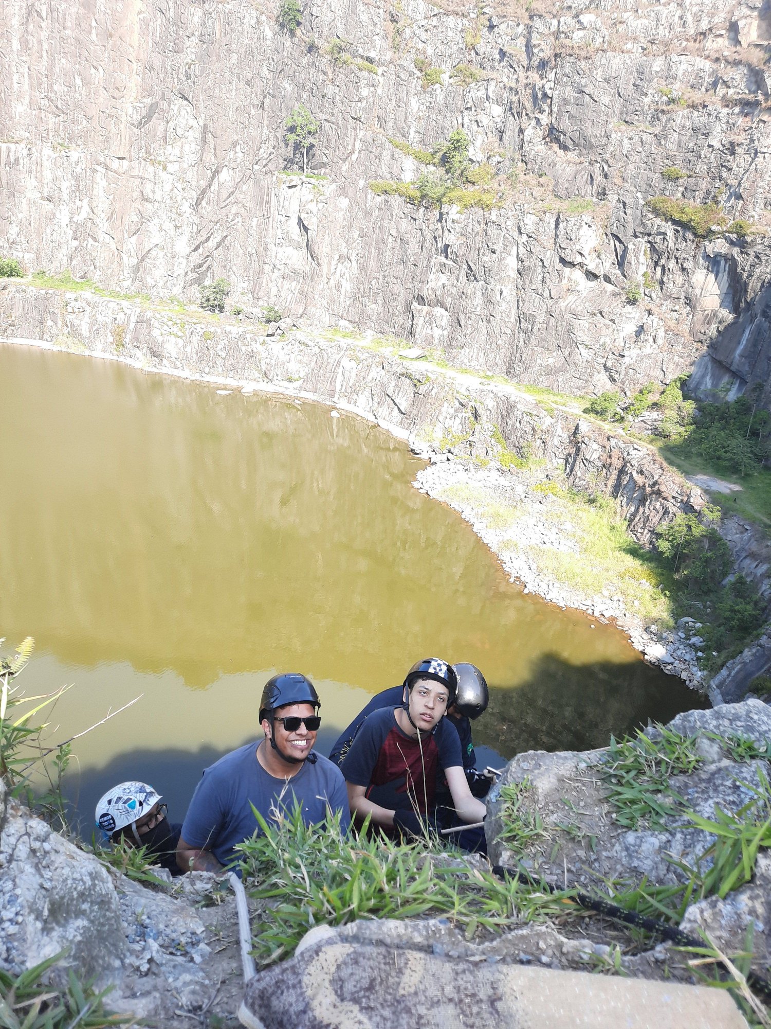 Essas 3 equipes resolveram unir forças e garantir a diversão pra quem nunca imaginou estar pendurado em uma corda a mais de 30 metros de altura, isso mesmo galera, São mais de 30 metros de antura e o local escolhido foi a PEDREIRA DO DIB que fica em MAIRIPORÃ à 40 minutos do centro de SÃO PAULO-SP, local de fácil acesso, tem um local na frente onde pode deixar seu carro (estacionamento não exige taxa e nem fornece segurança), tem um pequeno restaurante em frente do local, na pedreira não tem água, portanto leve a sua ou terá que comprar por lá. No dia 07/11/ano do corona resolvemos dar um presente para essa galera especial que confio em nosso trabalho e veio até a pedreira para ser nossa "cobaia" kkkk. Brincadeira galera. Neste sábado de sol fritamos nossos miolos para dar um sorriso a mais nestas pessoas, foram muito planejamento e estudo, para que nada dê errado.