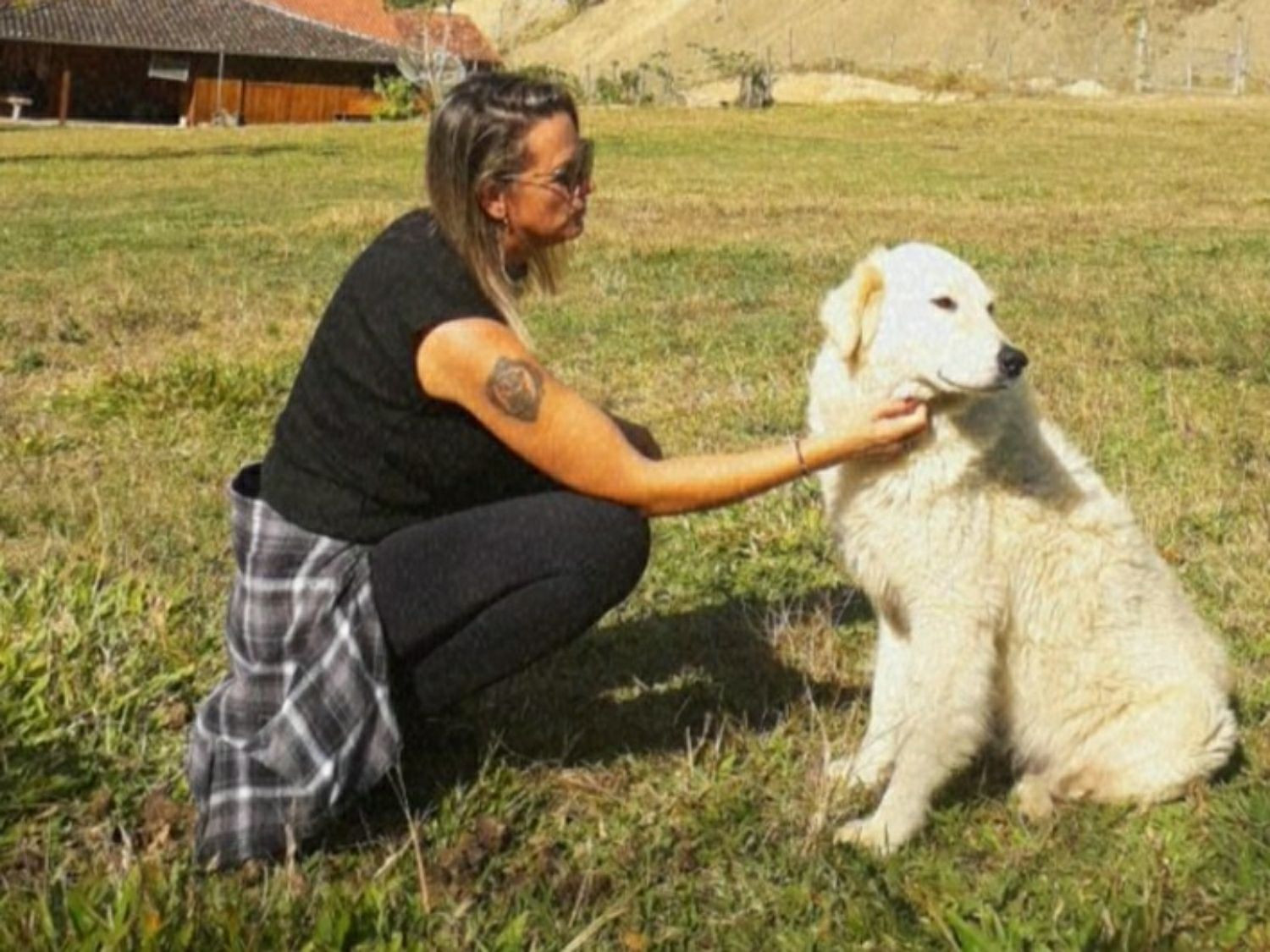 Sendo recebida pelo Mano, que é um belo cão da raça #Maremanoabruzes