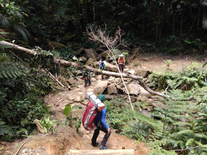 A trilha é bem demarcada, limpa, com escadarias e toda sinalizada com placas de indicação. O calor e a umidade prejudicam bastante a caminhada. O suor não vai embora e te deixa super molhado. Vá com roupas leves e leve água. A hidratação é fundamental.