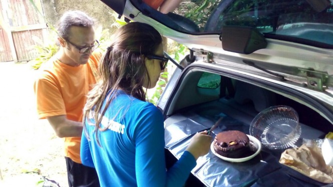 Arrumamos as malas, comemos o bolo de aniversário que eu ganhei dos meninos e saimos rumo a aventura. Cada um com seus 15kg nas costas, rumo a Praia da Ponta Negra há 7,8km dalí.