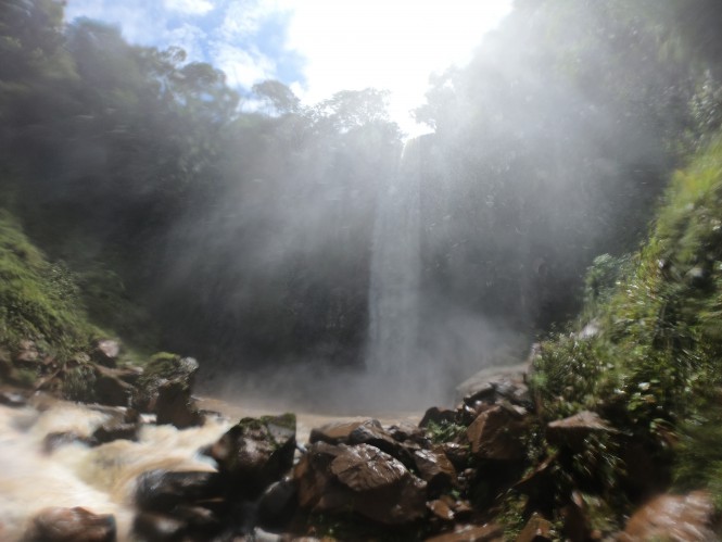 Da casa até a Cachoeira são aproximadamente 1km, bem tranquilos. A Cachoeira tem cerca de 70m. Como eu disse verão chuvoso!!! O spray da água veio nos encontrar , tomamos banho sem ao menos precisar entrar na água!