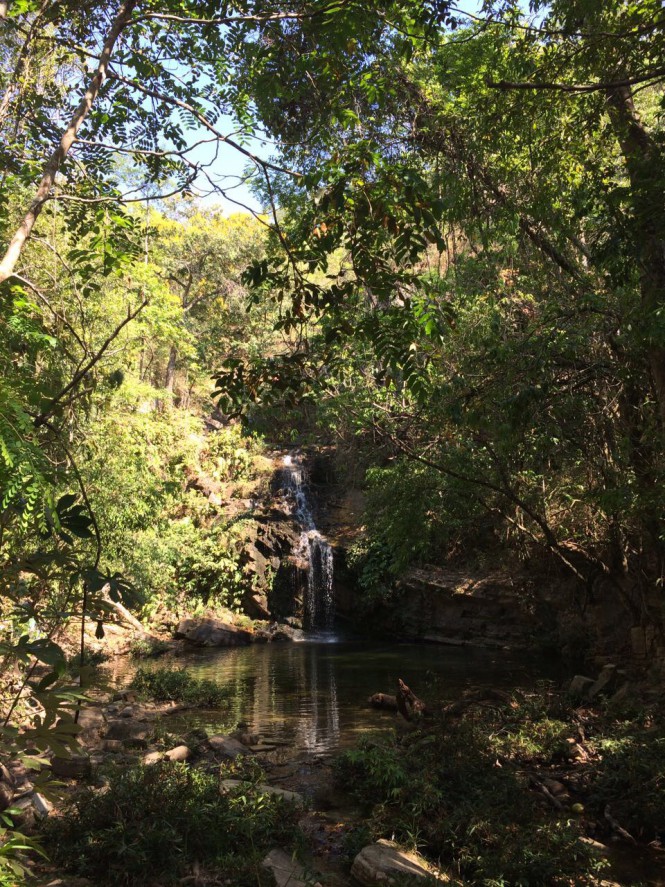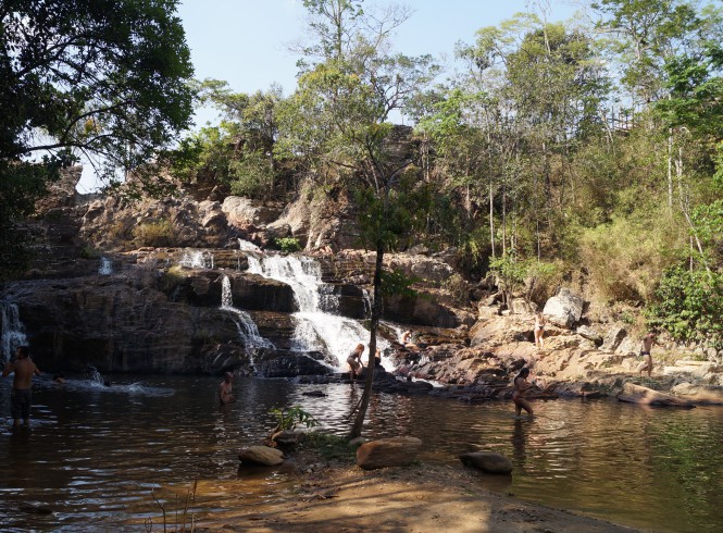 No segundo dia seguimos para a Cachoeira dos Dragões, distante uns 40km da cidade. O complexo conta com 8 cachoeiras que podem ser visitadas por meio de uma trilha circular de aproximadamente 4,5km. Na recepção há banheiros. E é aconselhavel ir de tênis e levar água e um lanchinho pra enganar a fome.
