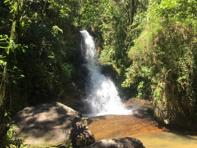 Iniciamos o restante da travessia por volta das 10h, nesse trecho final a descida judia um pouco dos joelhos. Chegamos ao seu final por volta 13h30. Tomamos um banho gelado na Cachoeira do Escorrega, uma cerveja gelada, pegamos o carro no estacionamento e seguimos pra parte alta novamente.