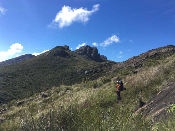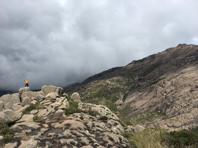 Da cachoeira seguimos para a Pedra do Sino, ao chegar na bifurcação Pedra do Sino x Travessia, paramos fizemos um lanche rápido, deixamos as cargueiras e subimos. A subida do Sino é tranquila, e demarcada por totens de pedra, se vc tem senso de direção e alguma experiência em trilhas, não terá erro, do contrário, contrate um guia.