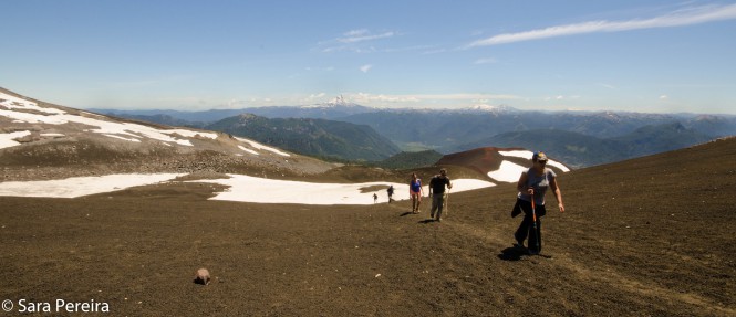 Fizemos a subida em mais ou menos quatro horas e descemos em duas horas e meia. A pior parte de ser fazer esse ascenso no verão é o calor, e como não tem muito gelo (pois o Sollipulli possui apenas 2282m) o que nos resta é uma areia fofa que atrasa e faz o esforço ser maior.