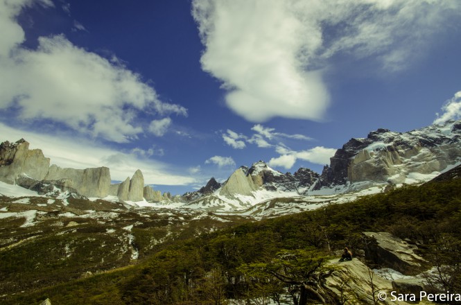O terceiro dia amanheceu tranquilo, apesar de todo o vento que escutei a noite, dessa vez não tinha barracas destruídas ou pertences espalhados pelo camping, como no PG, as árvores do Italiano protegem bem o acampamento. Depois do café da manhã, começamos a trilha, encontrei dois brasileiros que estavam fazendo o W no sentido contrário ao meu. Depois de quase três horas chegamos ao primeiro mirador do Vale, e sim, vale toda a caminhada. Pra mim foi o lugar mais impressionate do trekking, uma visão 360 graus onde mais da metade era de montanhas rochosas e cada uma com um formato diferente, realmente impressionante a imensidão e a beleza.