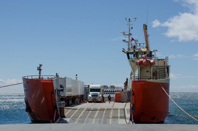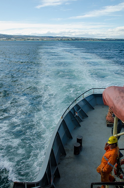 Para ir até Isla Navarino, resolvi ir (e voltar) via marítima. O serviço é feito pela TABSA - Transbordadora Austral Broom S.A. (http://www.tabsa.cl/portal/index.php/en/), a bordo do ferry Yaghan 2-3 vezes por semana. O preço é salgado: por volta de CLP 106.000 (R$512) a poltrona semileito e CLP 148.000 (R$714) o leito. O preço é por trecho, convertido em 15/02/2017. Considerando que a passagem aérea ida e volta deve custar só uma ida de leito, sai bem caro. Mas pra quem tem tempo, não quer ficar arriscando excesso de bagagem, quer curtir um ar fresco (afinal, já foram tantas horas na janelinha do avião) e tem mais coisa junto (tipo bicicleta), é uma opção. Resolvi embarcar, já que estava levando mais de 25kg nas costas. Além disso, já fazia parte do meu planejamento desde o início.