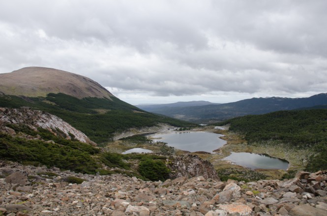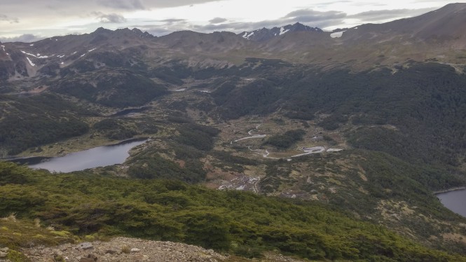 O dia começou subindo ao lado da cascata, passando pelo Paso Primero, Paso Australia, Paso de Los Dientes, contornando a Laguna de los Dientes. Aos pés da laguna está o Cerro Gabriel, um monte rochoso triangular piramidal. É possível fazer um ataque ao cume, mas resolvi seguir reto. Atravessei o vale e cheguei até Laguna Escondida. É nesse trecho que se encontram as vistas mais bonitas viradas para o sul, onde é possível avistar o lago Windhond, Cerro Bettinelli e dizem que dá pra ver até o lendário Cabo de Hornos num dia bom.