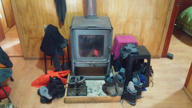 Cheguei na virada de 30 para 31/12 à meia-noite. Fui direto ao hostel, dia seguinte fui me registrar nos carabineros, passei no mercadinho ao lado pra comprar pão, comprei uns postais pra escrever no caminho, voltei pro hostel pra revisar o equipamento, fechar a mochila e deixar no hostel as coisas que não ia usar. O tempo não deu muita trégua, nublado por volta de 5-10 graus e às vezes caía uma chuva fininha bem chata. Fiquei meio apreensivo de achar que ia pegar o tempo todo assim, mas paciência. Como era ano novo, rolou um jantar especial, churrasco e vinho. Fui dormir cedo porque amanhã começava a aventura.
