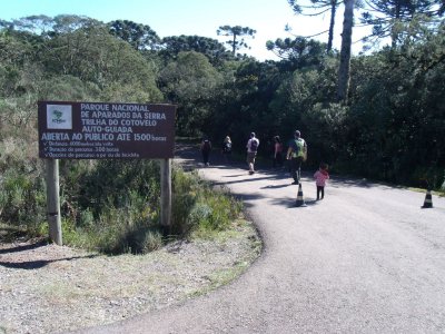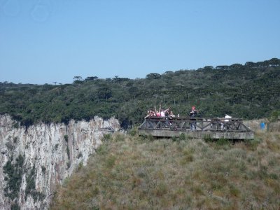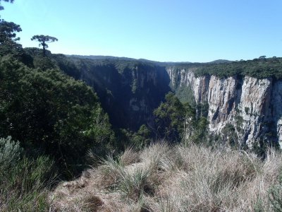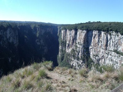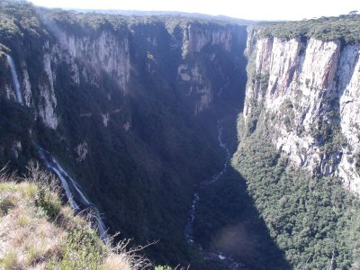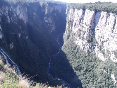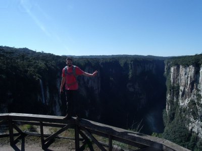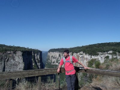 Visita ao Cânion, Situado no Parque Nacional dos Aparados da Serra, na divisa dos estados do Rio Grande do Sul e Santa Catarina, Brasil.
