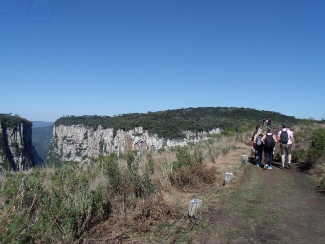 Visita ao Cânion, Situado no Parque Nacional dos Aparados da Serra, na divisa dos estados do Rio Grande do Sul e Santa Catarina, Brasil.