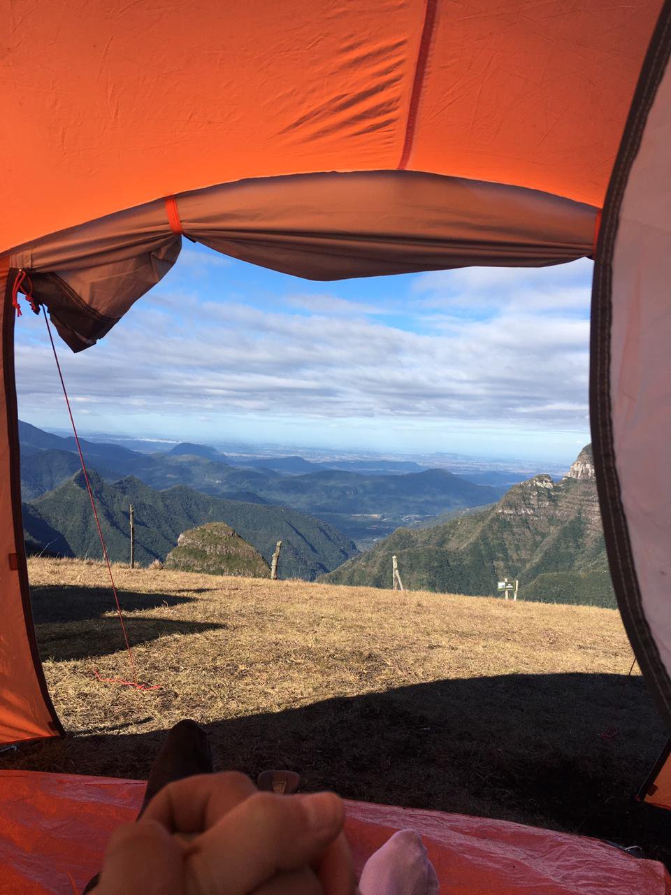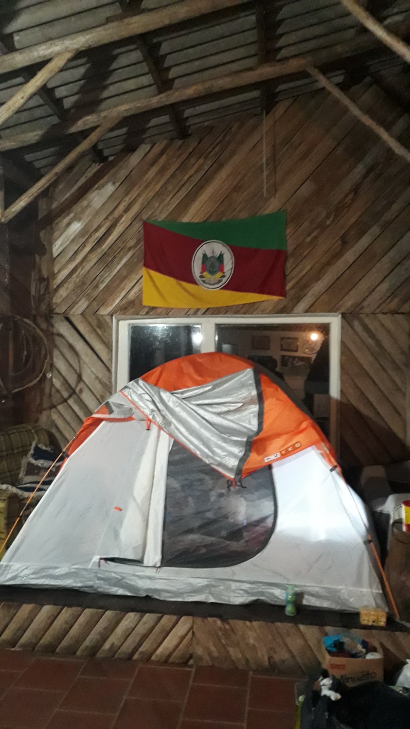 Estava chovendo e muito frio quando chegamos, então o Rogério, atual responsável pela Pousada Ecológica dos Cannyons, nos permitiu e sugeriu montar a barraca dentro do salão da pousada, pois nosso filho de 2 anos e meio estava junto, e já que só estávamos nós mesmo lá na pousada aquela noite, assim sendo dormimos duas noites com a barraca lá dentro, o preço é de R$30,00 por pessoa para acampar e também tem os chalés para quem gosta de mais conforto.