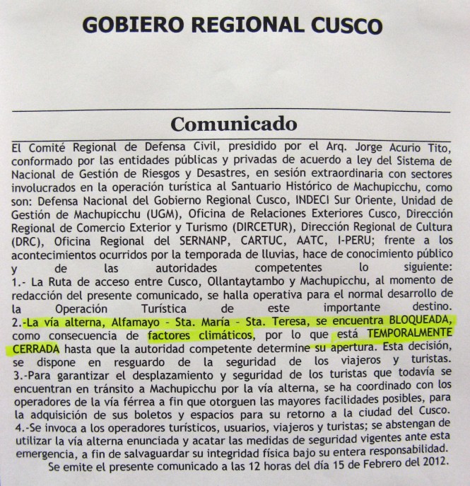 Saindo de Cusco há basicamente três formas de ir à MP. De trem, para quem tem pouco tempo e não curte um perrengue, e por trilhas longas (Caminho Inca e Salkantay). Planejei para fazer a Salkantay, com 5 dias de duração e com pico de altitude de 4.650 m, sozinho. Havia me preparado para isso, mas como viajei em fevereiro (costumo aproveitar os 30 dias de férias + a semana do carnaval), a chuva trouxe muita complicação na região, com notícias de deslizamentos, alagamentos e rios muito acima do seu nível normal.