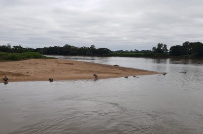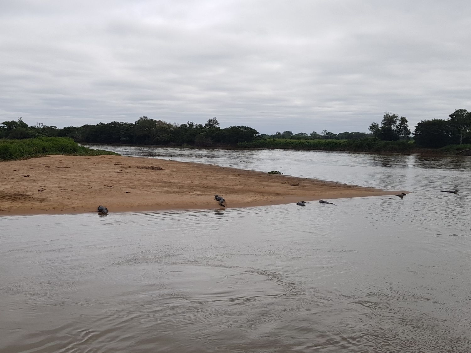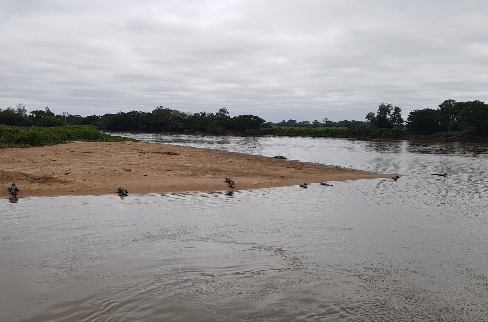 navegação, kayaking e birdwatching a bordo de um houseboat no pantanal. A beira do rio muitos jacarés observando minhas remadas