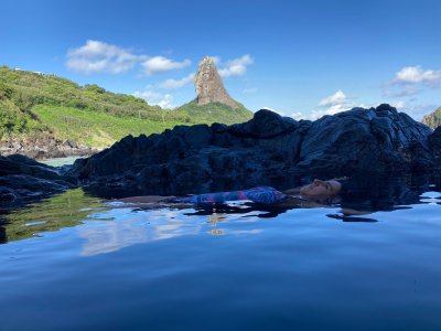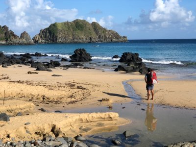 Bia, Edinho e Maya em Fernando de Noronha com foco em aventuras e de modo econômico.
