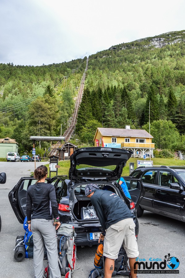 Seguimos de carro para Odda de lá para Tyssedal. Em Tyssedal basta seguir pela rodovia 13 prestando atenção nas placas que indiquem Skjeggedal, quando fará uma curva para direita e iniciará uma estreita e íngreme subida. São mais ou menos 7 km de distância até encontrar a área de estacionamento.