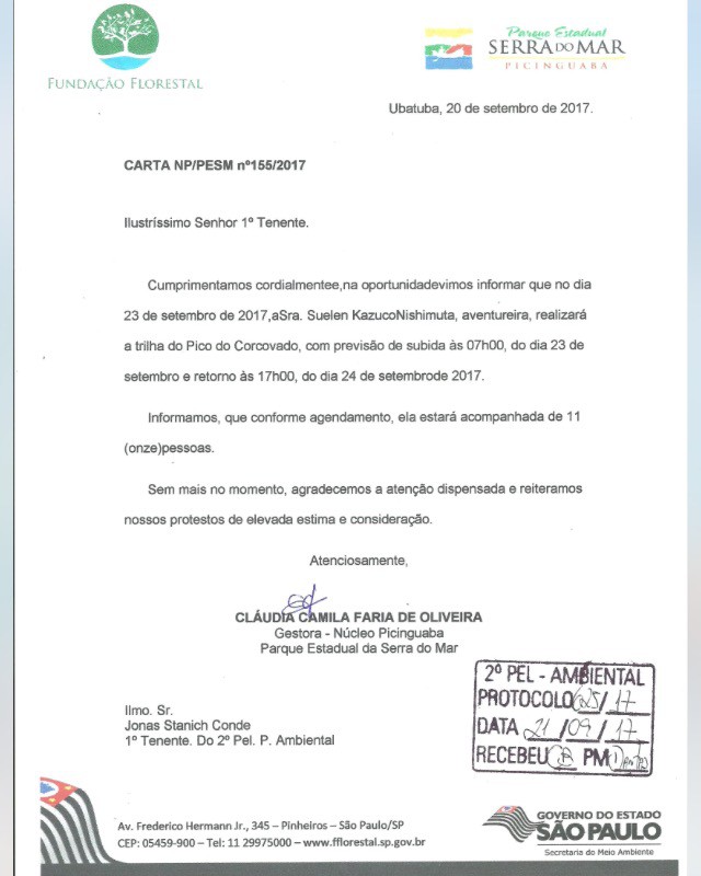 Valeu Renan!!! É uma trilha bem emocionante (vontade de chorar e sorrir o tempo todo! hahaha...) E a amizade perdura, com certeza! A questão da autorização foi porque eles são desorganizados e talvez haja até algo errado (recomendam guia e nós fomos sozinhos), então marcaram para três meses após a data que pedi. Daí a responsável ficava mandando e-mail remarcando (confusão que ela mesma fazia). Depois ela mudou e e-mail, pediu que assinássemos um termo, cada um de nós nos responsabilizando e enviasse também o documento de cada um. No fim, deu esta autorização anexa ao relato e me responsabilizando por todos. Chegando lá, não havia fiscalização. Compreendo que deve haver um controle, por segurança de todos. Mas sem fiscalização isso se torna dispensável. ;)
