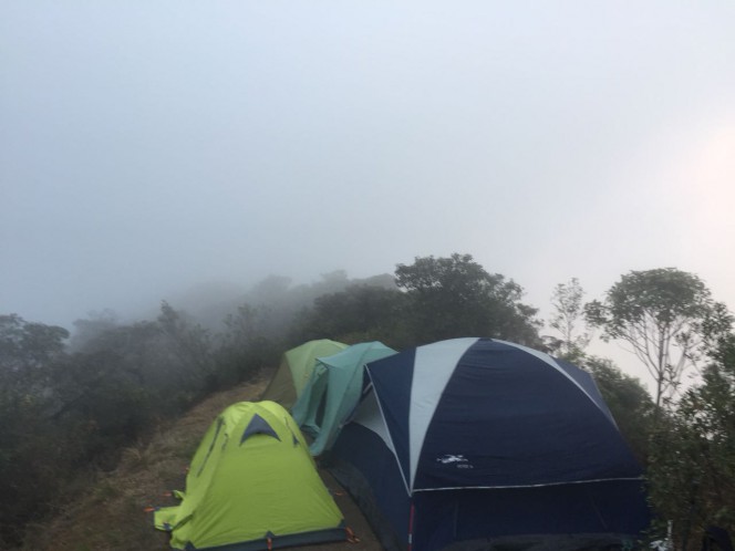 Oito horas de subida e chegamos ao topo. Já havia barracas montadas no cume mais alto, mas decidimos montar nossas barracas juntos em um espaço um pouco maior do lado oposto, mas que nos acolheu perfeitamente (se não fosse a pequena inclinação que nos fazia escorregar à noite! rs).