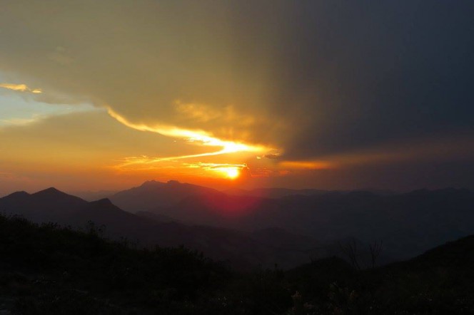Então acordamos com o Dani (ele sempre puxa o bonde!) e levantamos acampamento antes do sol nascer. No caminho, após uma hora de caminhada no escuro, paramos para observar esse fantástico nascer do sol. Indescritível. Tentamos algumas fotos, mas a maioria não ficou tão boa. Seguimos viagem, pois sabíamos que o caminho seria longo.