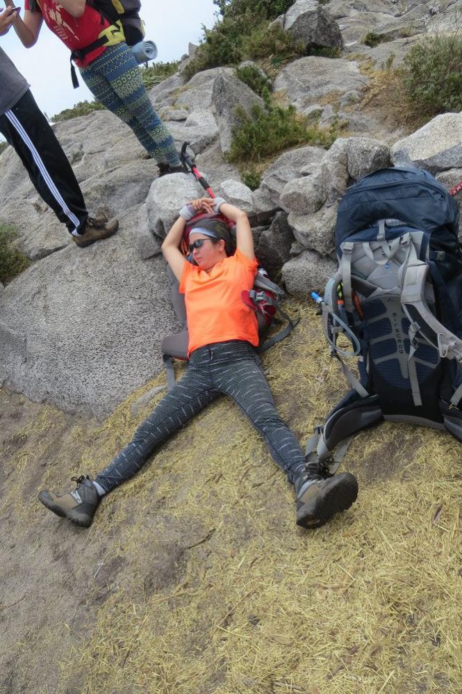 Mas após chegar ao último ponto de água, decidi que precisaríamos descansar e a Luna precisaria de cuidados. Montei minha barraca, colocamos o EVA, pedi para que deitasse, tomasse um remedinho para dor, salonpas para colar em pontos de dor e coloquei um saco de gelo em seu joelho (tecnologia japonesa! Gelo por reação química!). Desmaiamos de cansaço, afinal, foram 16 horas de trilha.