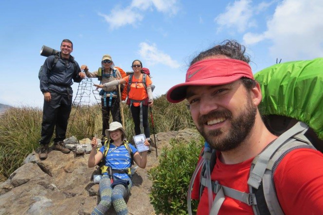 Café da manhã tomado e todos prontos (Dani, André, Bruno, Luna e eu)! Começamos a trilha por volta das 10:30 horas. Super tarde para os objetivos que gostaríamos de atingir naquele dia.