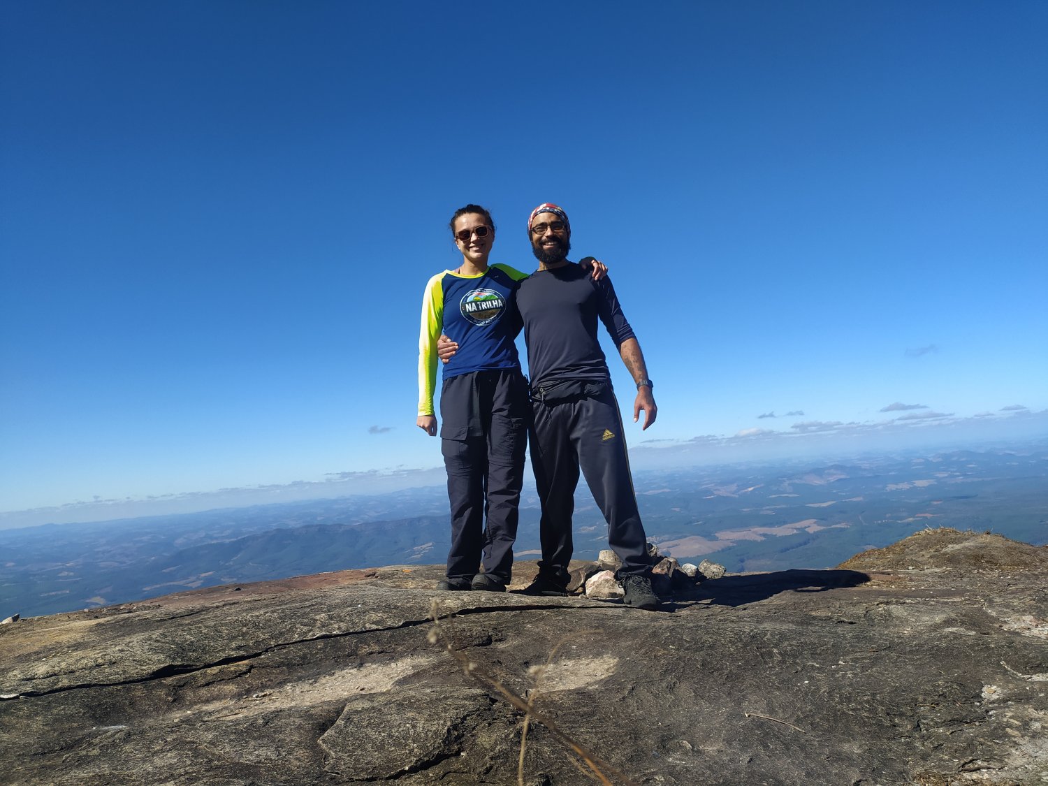 Enfim, depois de vários encontros e desencontros cheguei ao topo do Pico do Horizontes, que lugar lindo! Que céu azul louco, eu Jeff até nos abraçamos de emoção, a alegria das conquistas é ótima, mas o melhor mesmo é compartilhar com pessoas incríveis e tenho que agradecer a Jeff e Érica por isso!