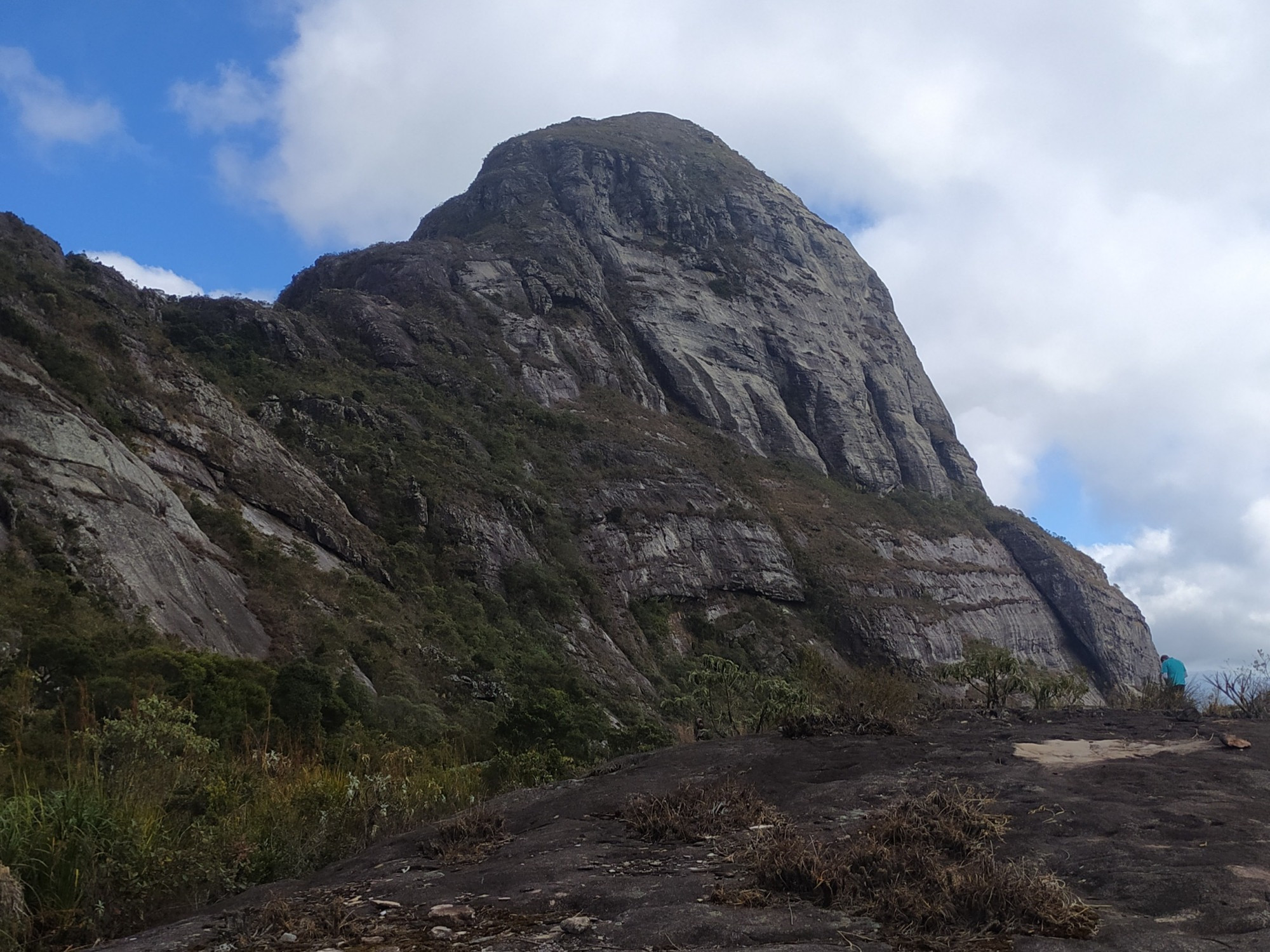 Já era esperado que íamos encontrar um trecho bem exposto de pedras e quando chegamos lá havia uma corda para ajudar a escalada, foi fácil, mas o que não sabíamos é que havia outro trecho pior que aquele anteriormente mapeado. Érica chegou no limite dela e declinou, parou por lá mesmo. Eu e Jef a deixamos com um pão para comer e seguimos com a promessa de não nos demorarmos.