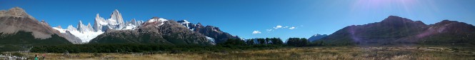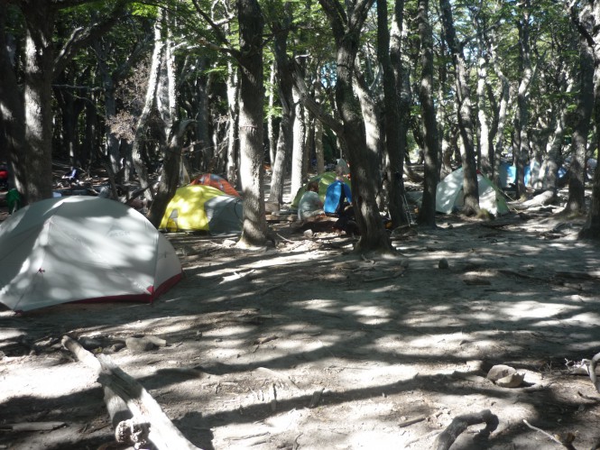 A placa diz que são 10km, mas todo mundo segue adiante e fecha uns 12, pois a vista legal mesmo fica ai, onde vemos a Laguna de Los Tres. Quem pretende escalar o Fitz Roy, fica no acampamento (acho que perto do km 9 ou 10) e segue no dia seguinte.