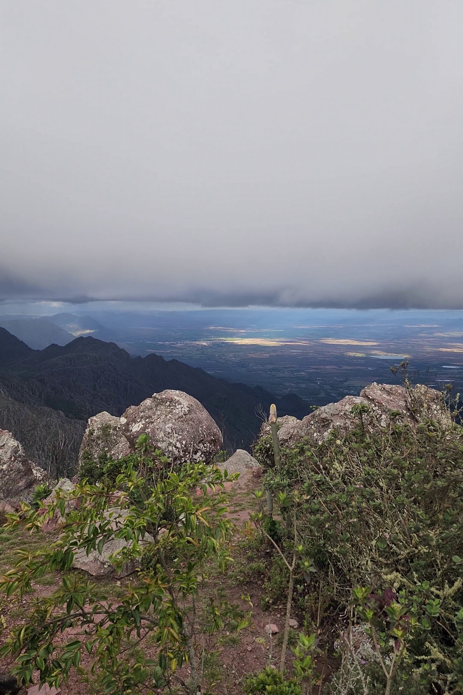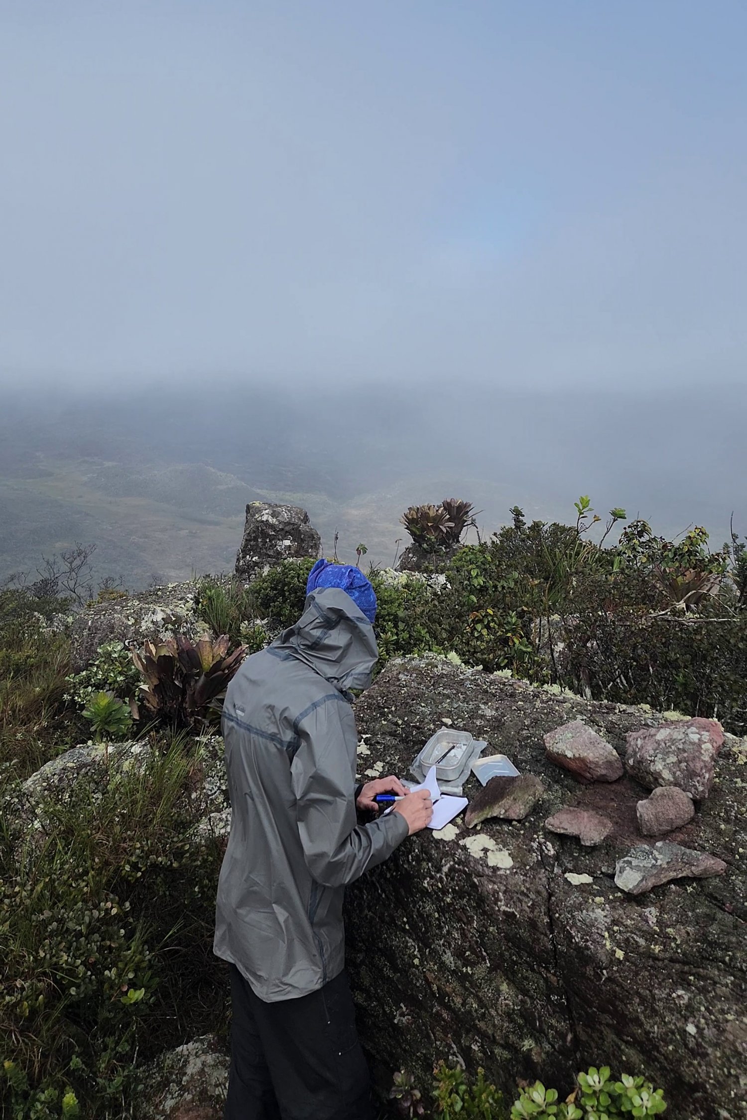 Caminhamos em direção ao ponto mais alto e atingimos o cume das Almas. Nosso primeiro cume da travessia. Conquistando o 1º cume da travessia com 1954 m de altitude e o 5º ponto mais alto do Nordeste. Assim que chegamos no pico, uma forte massa de ar se aproximava, mesm assim ainda tinhamos visibilidade das partes mais baixas. Porém, em poucos minutos a nuvem tomou conta do cume o que fez com que não tivessémos mais nehuma visibilidade. Achei que fosse cair alguma pequena chuva, mas era apenas uma neblina com massa de ar seca, menos mal.
