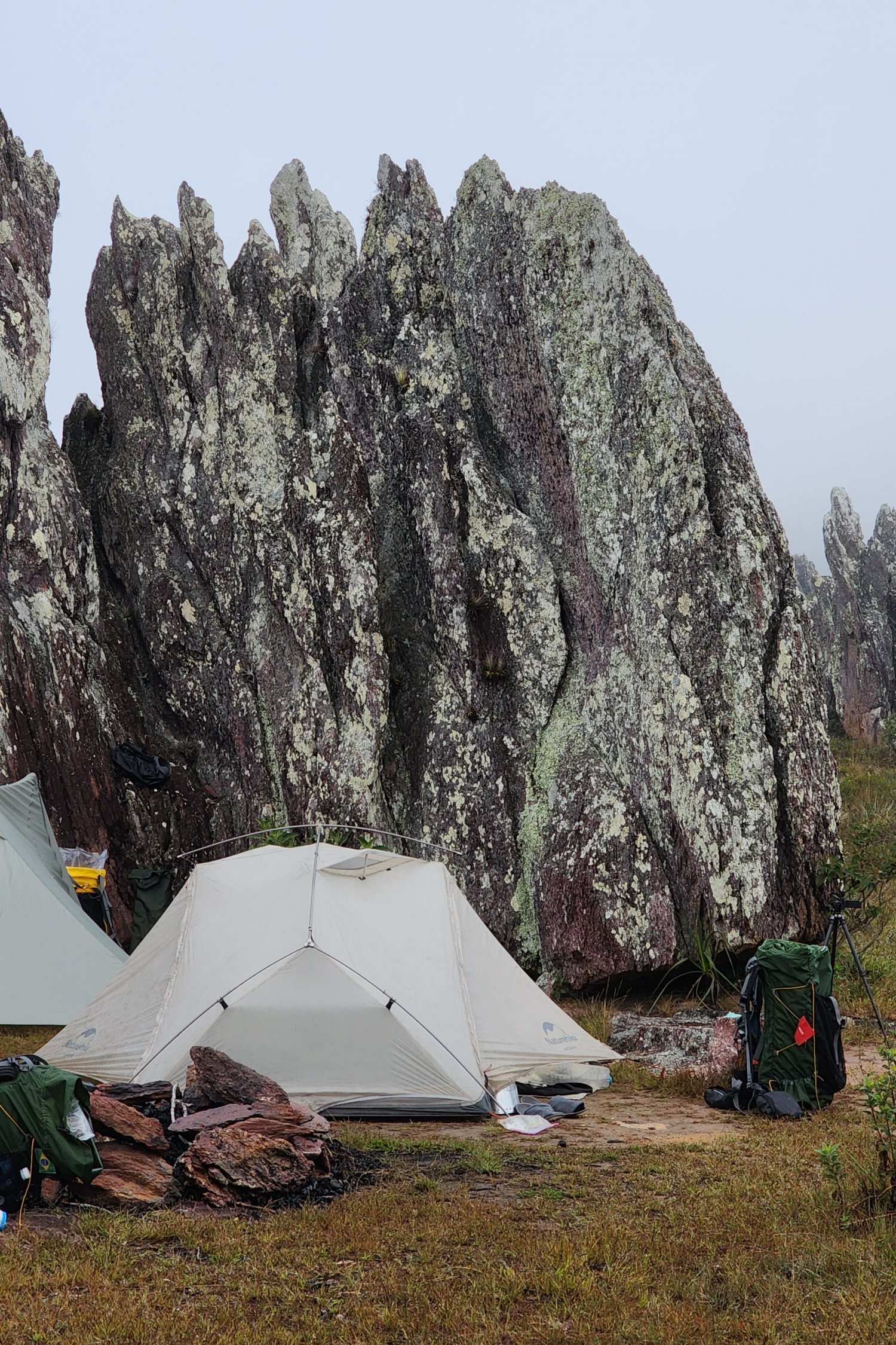 Apesar da pouco visibilidade, a medida que fomos descendo aos poucos fomos ganhando visibilidade. Ainda passamos no mirante das almas e voltamos para o acampamento. Montamos acampamento e nos preparamos para passar a nossa primeira noite nas Serras Altas da Chapada Diamantina.