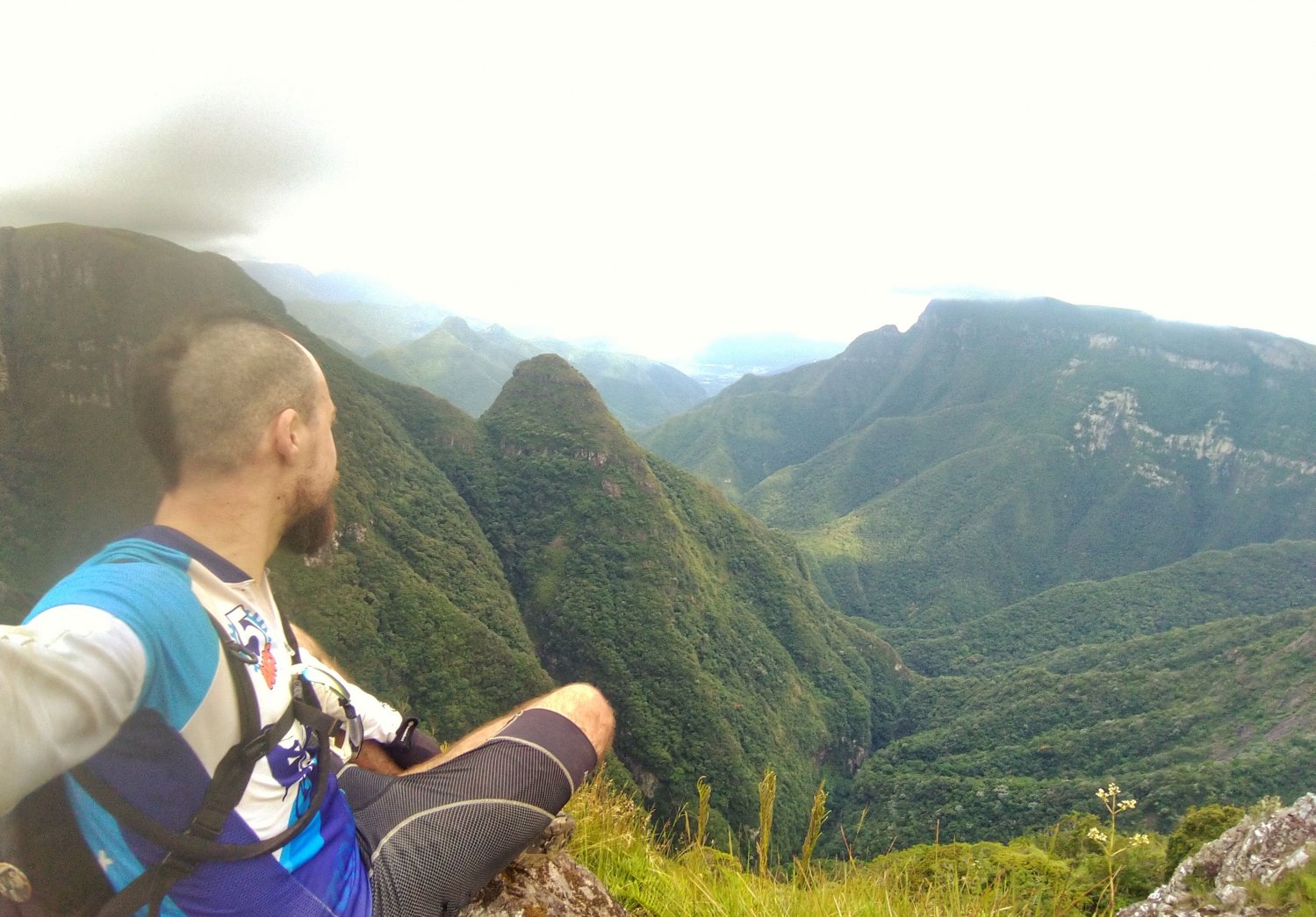 Iniciei a subida da Serra do Corvo Branco às 15h30. De baixo já avistava as nuvens que cobriam as montanhas. Torci pra que elas fossem embora assim que eu chegasse ao topo. Subi a Serra em um ritmo que julguei muito bom. Inesperadamente, a Serra mais difícil do dia não foi a do Corvo Branco. Ao chegar ao topo encontrei o Matheus, que me aguardava feliz da vida.
