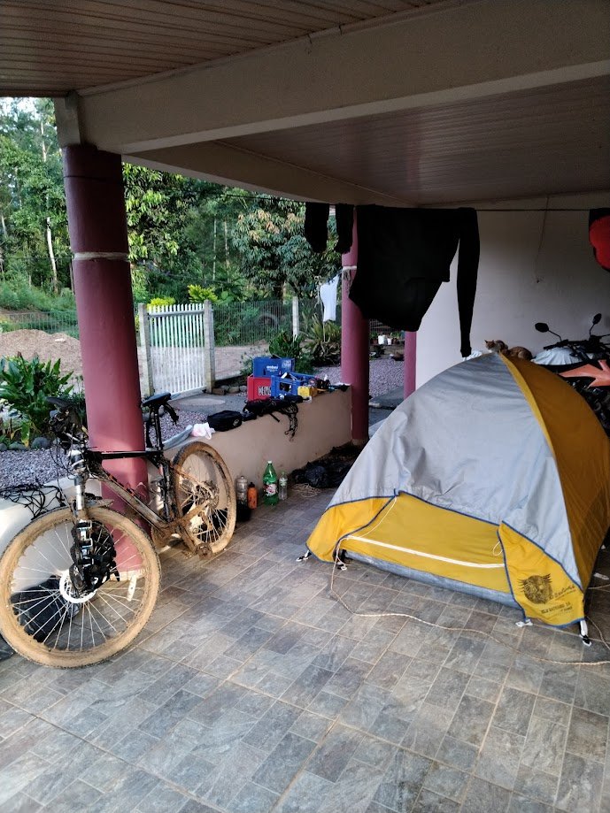 No dia seguinte tomei café sozinho, pois eles já haviam seguido para seus afazeres. Após arrumar todas as coisas, pedi permissão para lavar minha bicicleta, que estava muito, mas muito suja. Com barro por tudo. Enquanto isso deixei algumas roupas secando.