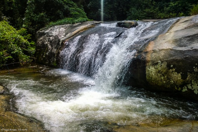 Seguindo o fluxo do rio, logo abaixo existe uma pequena ducha e um poço raso e mais abaixo uma queda d’água mais forte, perfeita para aquela massagem natural rsrs