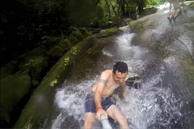 E por último mas não menos importante e tampouco menos divertido está o escorregador, a última queda d’água não é tão inclinada e é lisa, permitindo escorregar até o último posso com 3 metros de profundidade.
