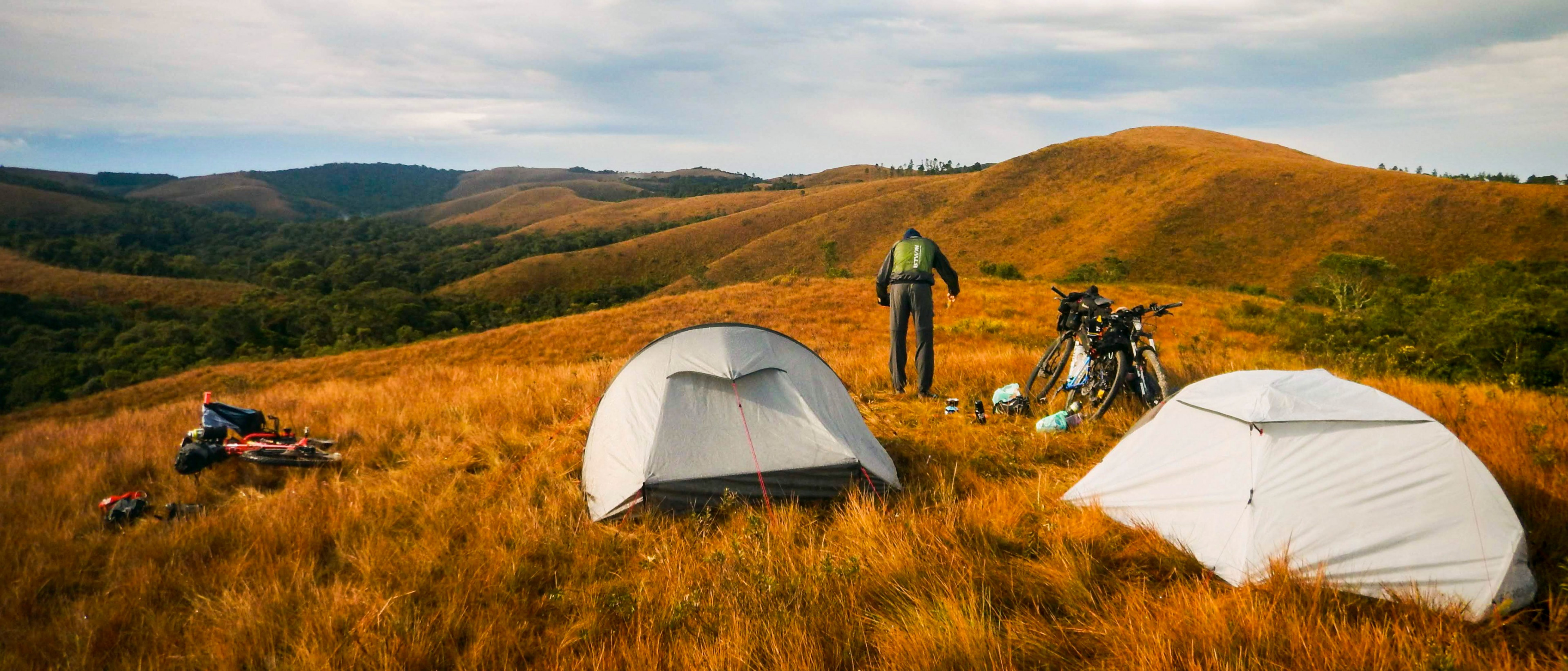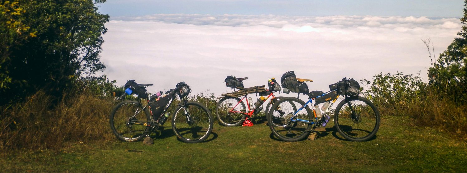 O Bikepacking, enquanto “modalidade”, começou a ser difundido à pouco e as informações sobre equipamentos são escassas pela internet. Como as bicicletas variam de tamanhos e medidas, fica difícil criar uma bolsa de quadro padrão então a maioria “comercial” delas são feitas sob encomenda ou no do-it-yourself. A vantagem que vejo é que no Bikepacking a bicicleta fica bem mais leve e também mais estreita, então, viajar pegando single-tracks não seria um problema. O mesmo vale pra pegar carona e aqueles momentos que você precisa carregar a bike. Sem alforges e bagageiros fica bem mais fácil. Há marcas bem especificas de bikepacking que difundem a cultura como a Surly, Salsa, Porcelain Rocket etc.