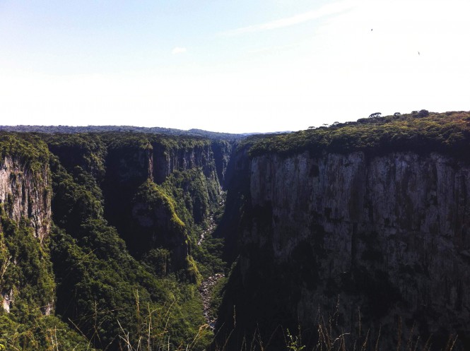 Com uma extensão de 5,8 km, uma largura máxima de 2 km e uma altura máxima de cerca de 700 metros, o cânio Itaimbezinho situado no Parque Nacional dos Aparados da Serra está dividido entre Rio Grande do Sul e Santa Catarina. A parte superior do planalto pertence às terras gaúchas, enquanto as bordas ficam por conta da região mais gelada do Brasil.