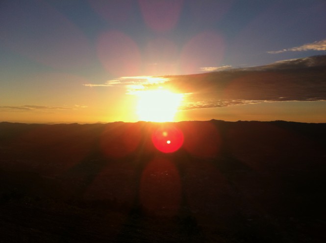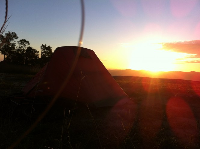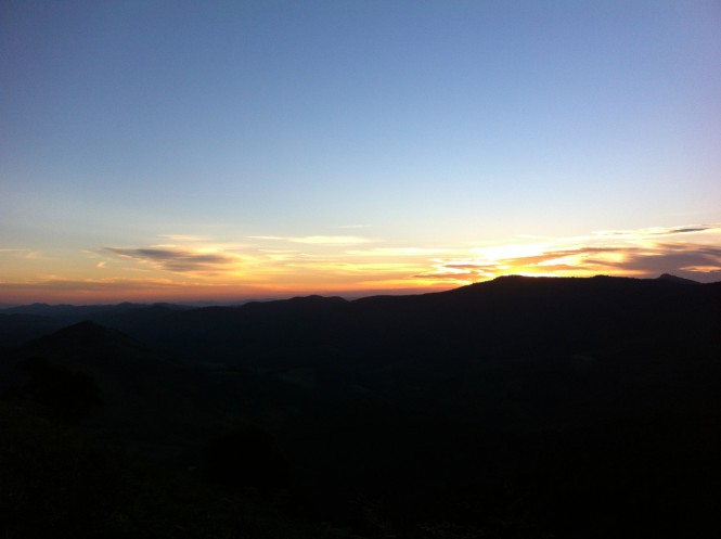 Enquanto descansava, avistei um lugar perfeito para montar o acampamento e passar a noite, chamado de Pico dos Cabritos e seus 1.470 metros de altitude. Cheguei antes de anoitecer e pude aproveitar um belíssimo pôr-do-sol, que parecia até uma recompensa, um presente da Mantiqueira.