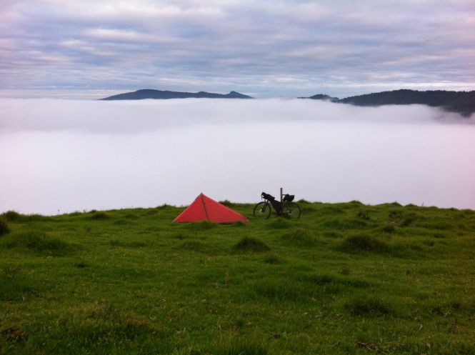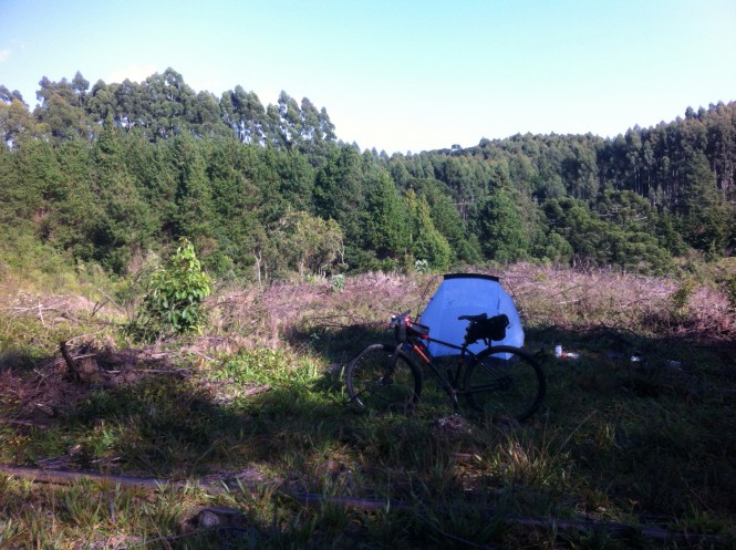 Quando me dei conta, a escuridão já estava por tomar todo o céu e eu ainda não tinha encontrado a cidade e muito menos o camping que planejava ficar. Então no alto da serra encontrei um lugar apropriado para acampar, que eu carinhosamente o apelidei de “o lugar hostil”. Um emaranhado de madeiras e árvores cortadas. Não pensei duas vezes e fui logo montando meu abrigo.