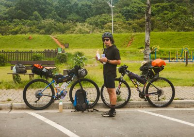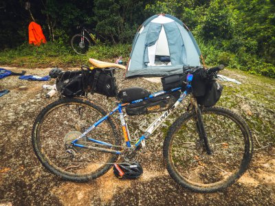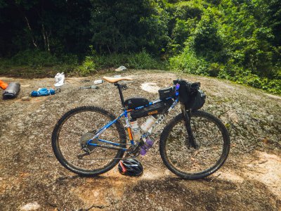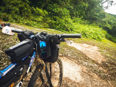 Sempre funcionam né?! hahaha A bolsa de Guidão é um protótipo da Curtlo. Já existe para comprar, não é direcionada ao Bikepacking, mas esta me servindo mto bem.